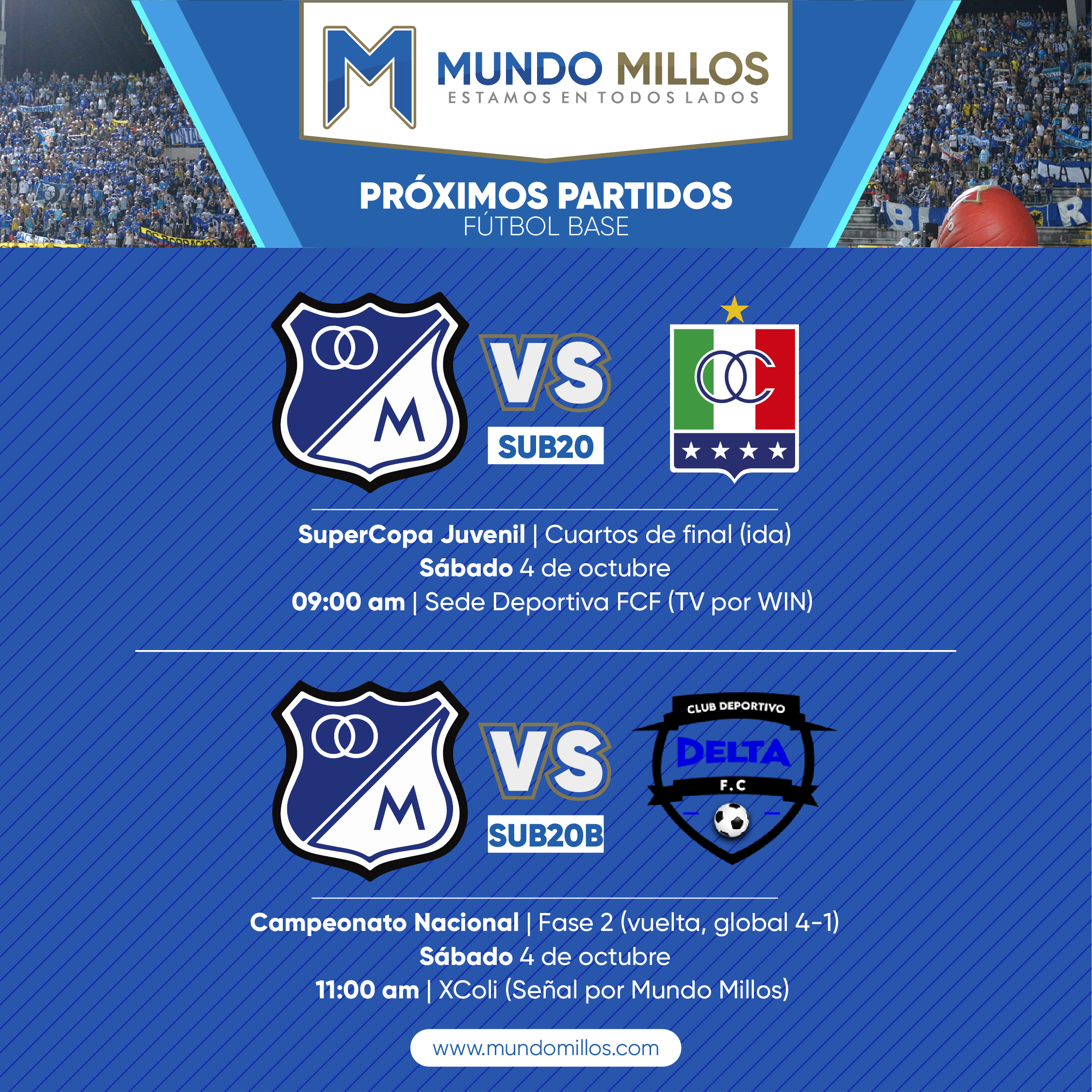 Como cada semana, MundoMillos estará junto a los equipos juveniles de Millonarios realizando el cubrimiento del fútbol base.