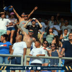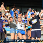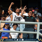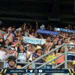 Millonarios fue local en su primer partido de la historia en el Sierra Nevada. La barra azul triplicaba en número y en calidad a la parcial samaria. Oriental se vió muy imponente y quienes se ubiaron en Occidental no se quedaron atrás.
