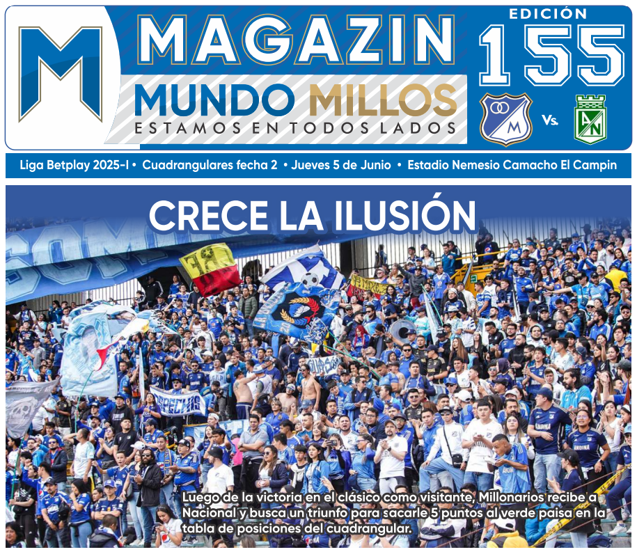 Como cada partido de local, nuestros colaboradores estarán entregando los ejemplares de nuestro Magazín Mundo Millos en las entradas de las tribunas del estadio. Puedes reclamarlo completamente gratis.