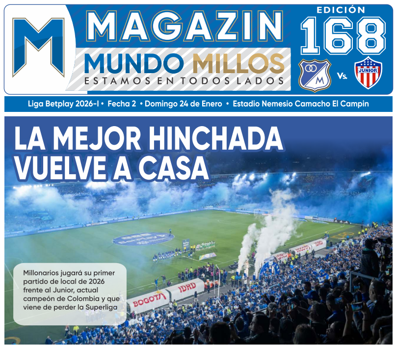 Como cada partido de local, nuestros colaboradores estarán entregando los ejemplares de nuestro MagazÃn Mundo Millos – Edición 168 en las entradas de las tribunas del estadio. Puedes reclamarlo completamente gratis.